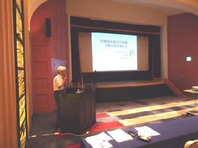 1題目は、日油株式会社 島田邦男先生より「化粧品防腐力の基礎と微生物学者達」という演題でご講演いただきました。島田先生は、東京農業大学客員教授を務めるとともに、日本化粧品技術者会をはじめ化粧品研究の分野でご活躍されております。ご講演では、前半に化粧品の防腐力に関て、後半に防腐に深く関る微生物の研究に従事した4名の学者についてお話をいただきました。前半は、製品に求められる防腐力を必要最少量の防腐剤で達成させるには、防腐剤のもつ力価と水・油・活性剤層などへの分配(存在量)を考慮した設設計が必要であることを、例えば油の種類により各層における防腐剤の存在量比が大きく変化することなど具体例を交えてお話いただきました。後半では、レーウェンフック・バスツール・北里柴三郎・野口英世と微生物研究にゆかりある人物を取りあげ、各人と関係のあった同世代の学者との感動や対立のエピソードなどを交えてお話いただきました。前半では実用的な、後半では過去の偉人達の思いを感じられるような、興味深いご講演を実施していただきました。