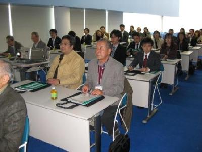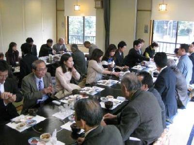 その後、我孫子市内のレストラン「花悠房」にて昼食をとり、千葉ニュータウンの「竹中工務店・竹中技術研究所」へ向かいました。印西市にある65000㎡の敷地には幾何学的でモダンなデザインの建物が配置されており、いかにも時代の最先端の研究がされているという印象を受けました。技術研究所の概要説明の後、業務内容説明DVDが上映されました。地震は避けることができませんが、その被害を避けるための液状化対策技術や免震技術、耐震補強等に関心が集まっていたようです。その後3班に分かれて、各施設を見学しました。防虫実験室では、虫が発生しやすい環境を作り、様々な条件で補虫してデータを集積し分析しています。搬入口に前室を設けることにより虫の侵入を約8割防げるそうですが、開発した吸引補虫装置2台によって前室設置と同程度の効果がある等の説明を興味深く聞きました。壁面で樹木を育てる緑化技術の説明を受け、音響実験室では設計段階で建物完成後の音の響きを再現する実験を体験しました。先端技術展示室では、建築前に建物内部をバーチャル体験できるシステムを見せていただきました。その後、工場再構築の実施事例、地震に強い生産施設への取り組み、防虫エンジニアリングについてのミニセミナーがあり、非常に濃い内容のものとなりました。
